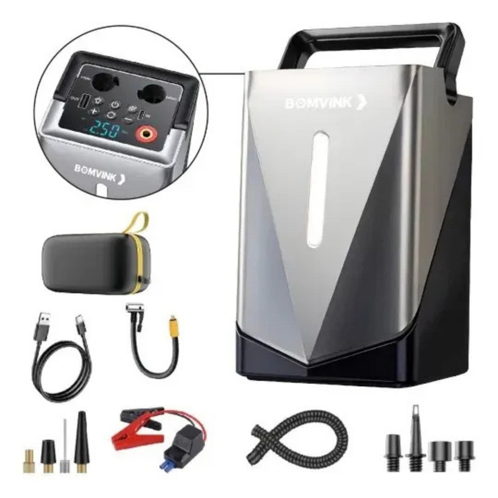 ⚡🚗 Auxiliar de Partida + Compressor de Ar Portátil Emergência com Power Bank Multiuso 🚗⚡