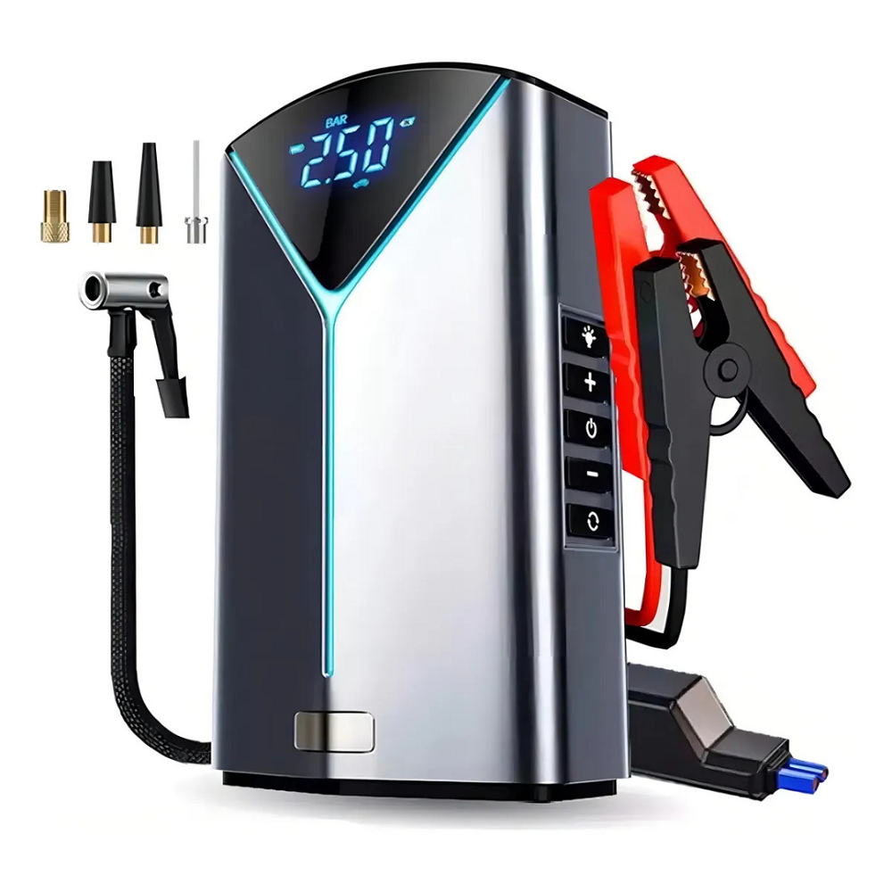 🔥 Garanta já o seu Auxiliar de Partida Portátil com Compressor de Ar e Display Digital e nunca mais fique na mão em emergências!